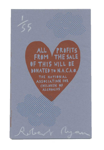 Eight page, two colour hand screenprinted zine, printed on blue coloured sugar (construction) paper.